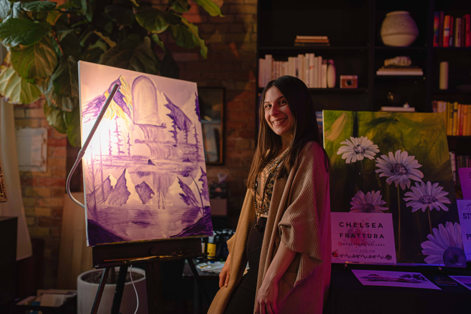 Chelsea Frattura is a Toronto-based painter working in oil. With a BFA in Visual Art, her work depicts surreal landscapes and physical realms based on esoteric space. Inspired by vibrant colour and fluid motion, her work captures states of being felt through human experience on dreamy, lucid picture planes. Chelsea has done commission pieces for business office spaces and has had her work featured in various galleries and art shows in the GTA.